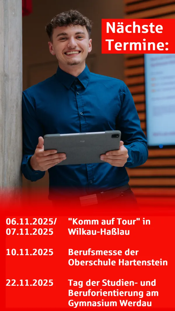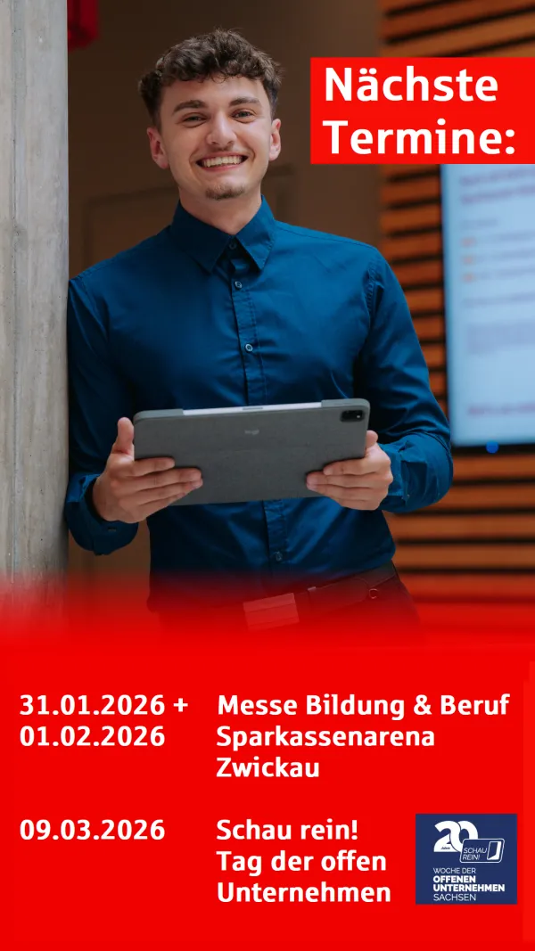 Vom ersten Tag deiner Ausbildung bzw. deines Studiums arbeiten wir alle Hand in Hand – als Team Sparkasse Zwickau. Während dieser wirst du immer feste Ansprechpartnerinnen und Ansprechpartner haben, die dir Orientierung geben und bei Fragen oder Herausforderungen weiterhelfen. Du traust dir zu, komplexere Aufgaben schon auf eigene Faust zu lösen? Super! Wir fördern dich auch in deiner Selbständigkeit, ohne dich dabei zu überfordern!